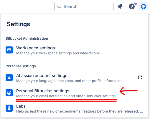 • Click on Personal Bitbucket settings.
