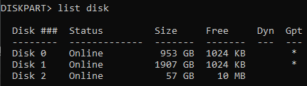 DISKPART> list diskPlaintext
