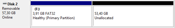 Without size=<size in megabytes>, the rest of the space will be used by the partition. We choose 4000MB here, because it can’t be bigger for a FAT32 file system.