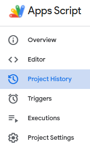 You can also create a version of the current state of the code, a snapshot. Via the Apps Script web interface, this snapshot is accessible via Project History. A version is an immutable state of the project.