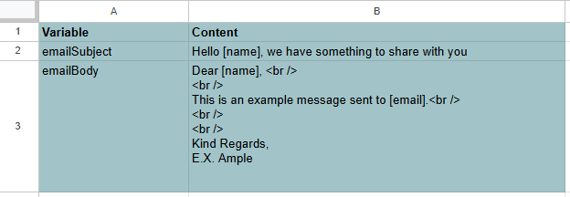 I have created a very simple settings page. We can read out the cells for the mail subject and mail body here and replace the [placeholders] later.